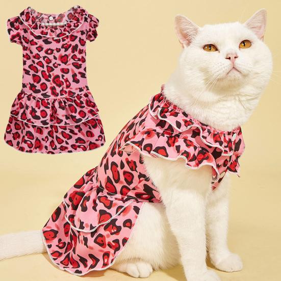 Платье для кошек с леопардовым принтом и рюшами по краю Хлопок Одежда для собак Двуногие