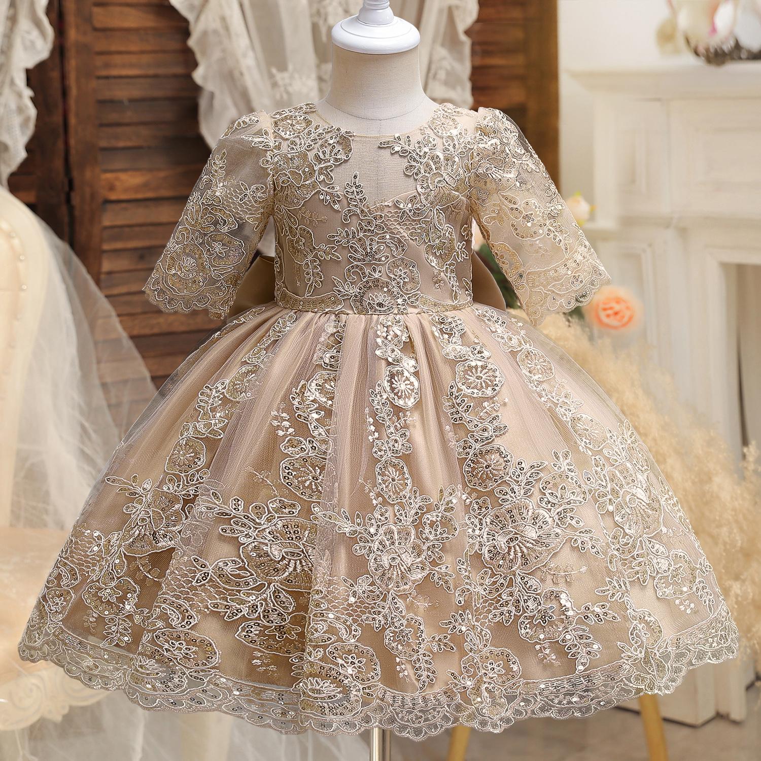 Платье для крещения на первый день рождения для девочек, роскошный костюм принцессы с вышивкой, свадебное платье с открытой спиной и бантом, новогодние рождественские платья для малышей