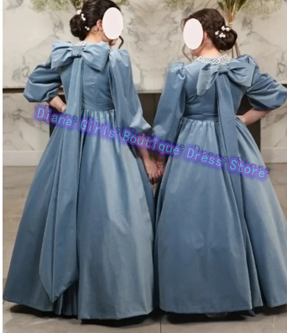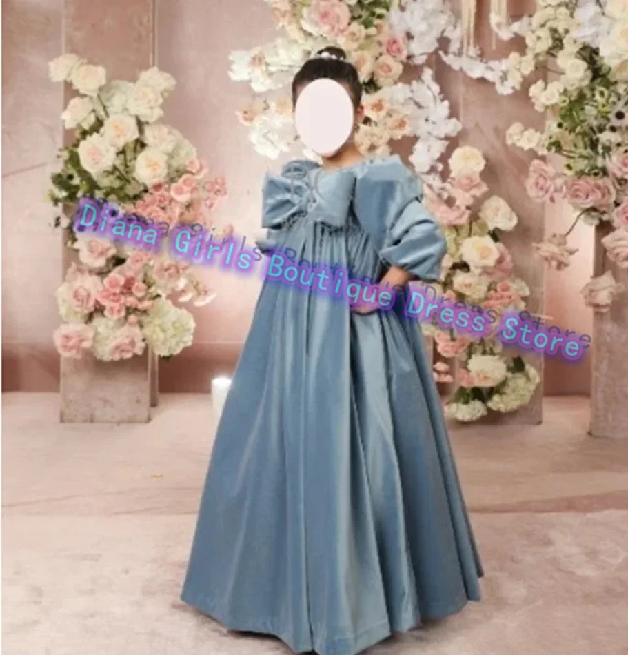 Платье для крещения и первого причастия, атласные пышные платья с цветочным узором для девочек, маленькая принцесса, детские бальные вечерние платья на день рождения