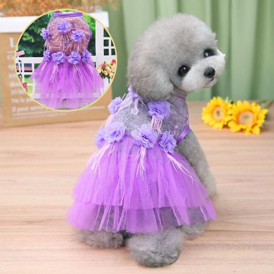 Платье для собак из дышащей невыцветающей сетчатой пряжи, милое платье принцессы с цветочным принтом для собак для чихуахуа M фиолетовый