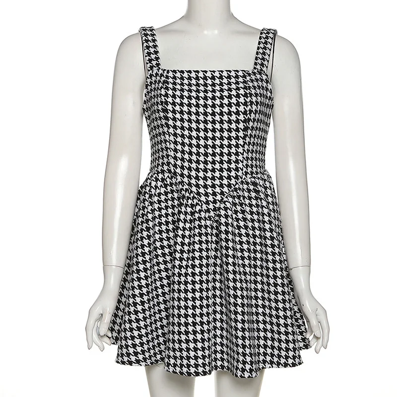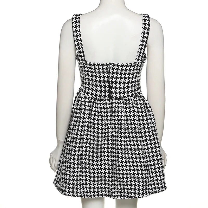 Платье женское ТРАПЕЦИЕВИДНОЕ на тонких бретельках, пикантное элегантное короткое вечернее в клетку, с открытой спиной, в виде птицы, для ве...