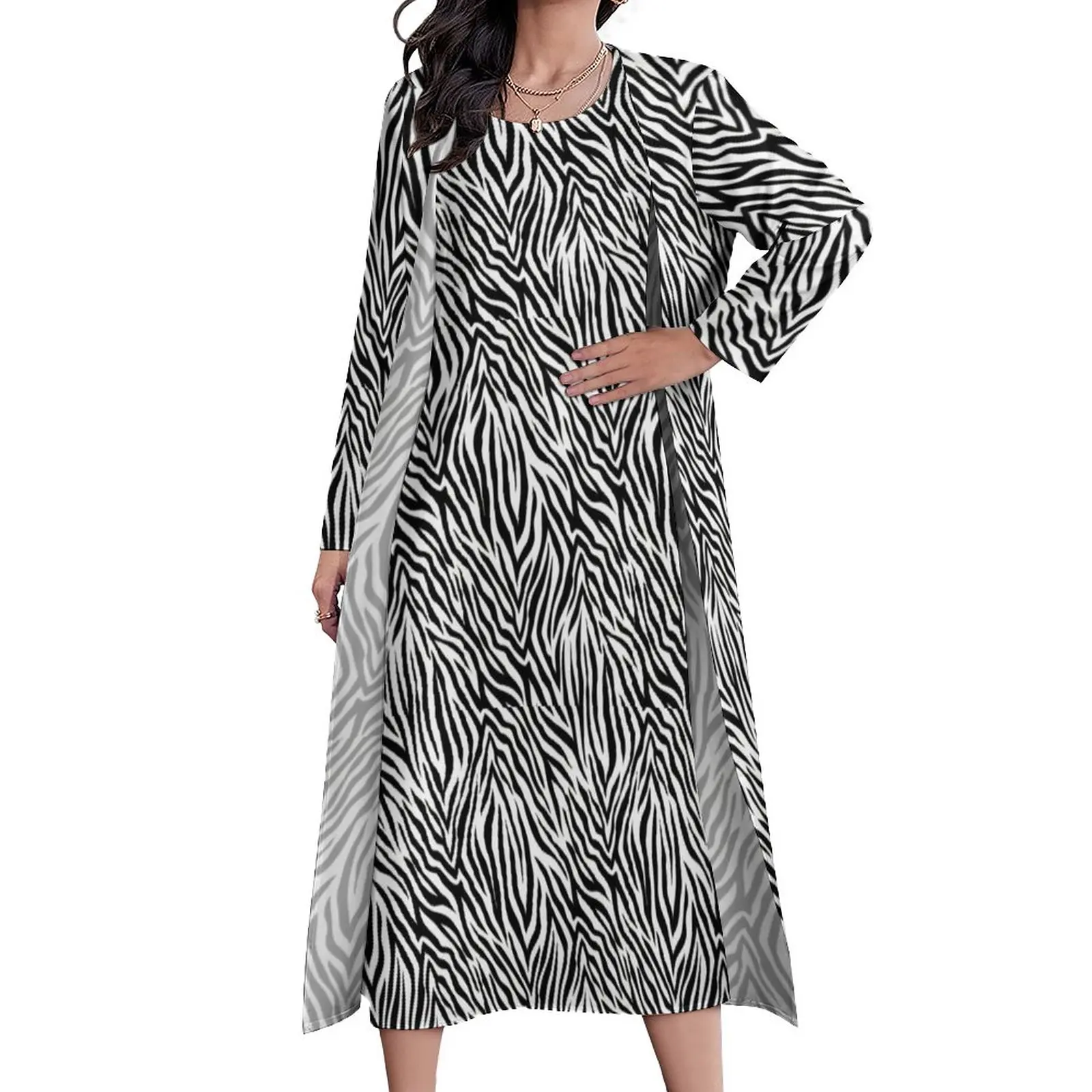 Платье женское длинное в полоску, модное пляжное элегантное платье-макси в Корейском стиле, с принтом зебры, в черно-белую полоску, в стиле б...