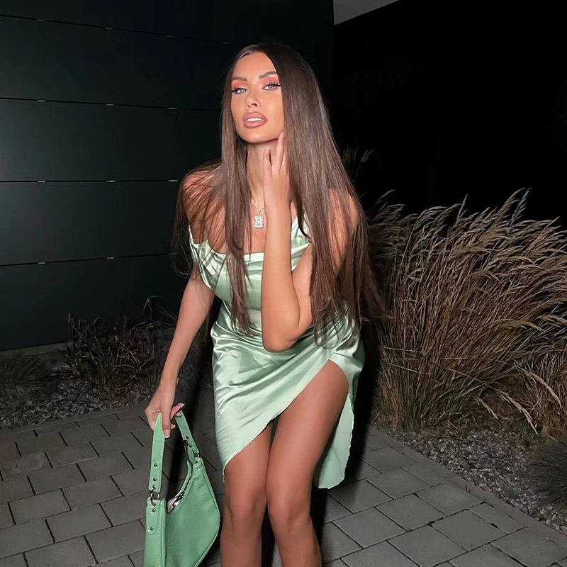 Платье женское на одно плечо с завышенной талией, соблазнительное элегантное модное Тюлевое приталенное, с прострочкой, мятного цвета, с за...