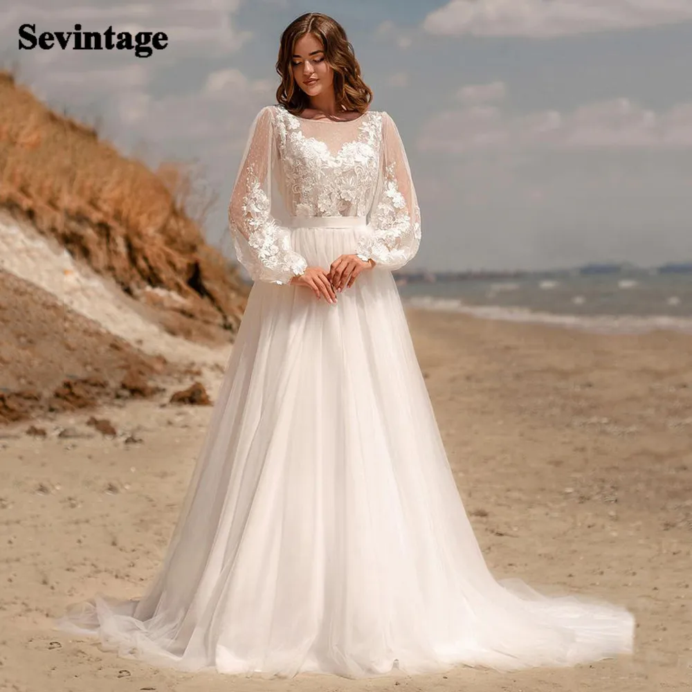 Платье женское свадебное ТРАПЕЦИЕВИДНОЕ из тюля в горошек с длинными рукавами