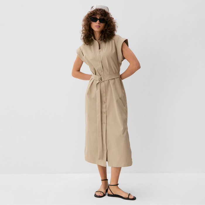 Платье женское MINAKU: Safari миди цвет бежевый ,р-р 44