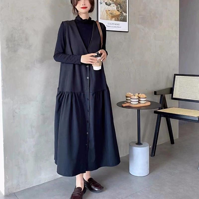 Платье-жилет без рукавов с большим V-образным вырезом для женщин, повседневное платье в стиле пэчворк One size чёрный
