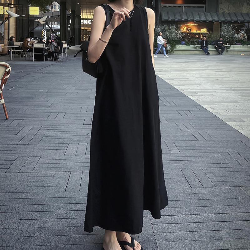 Платье-жилет без рукавов с элитным ощущением, уникальная летняя черная длинная юбка миди с открытой спиной для женщин XL чёрный
