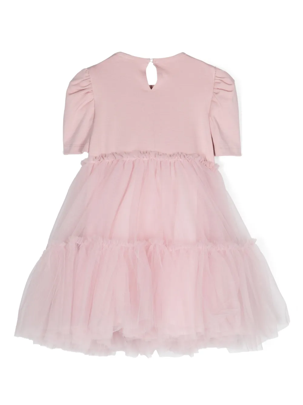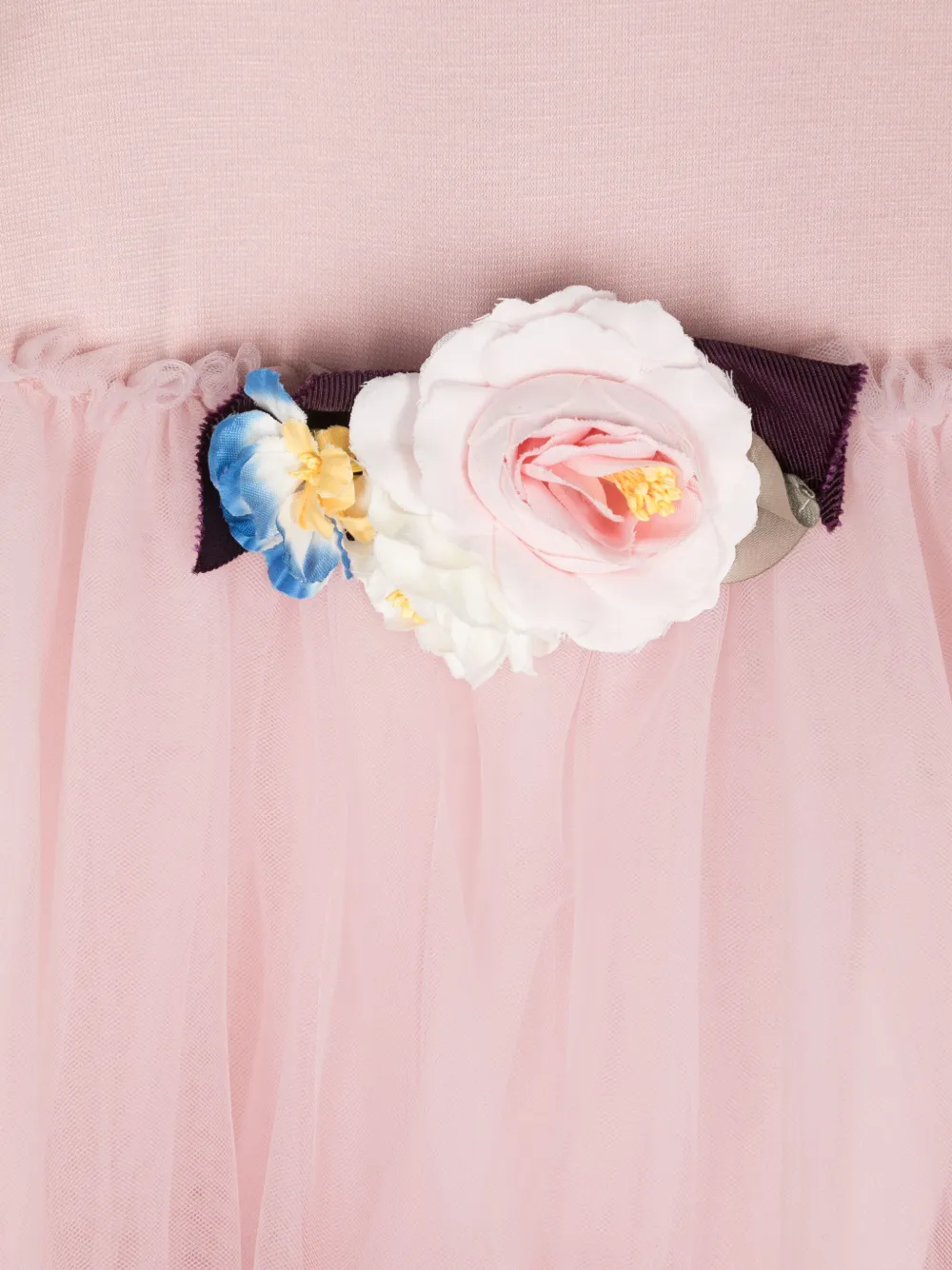 Платье из тюля с цветочной аппликацией Monnalisa, розовый