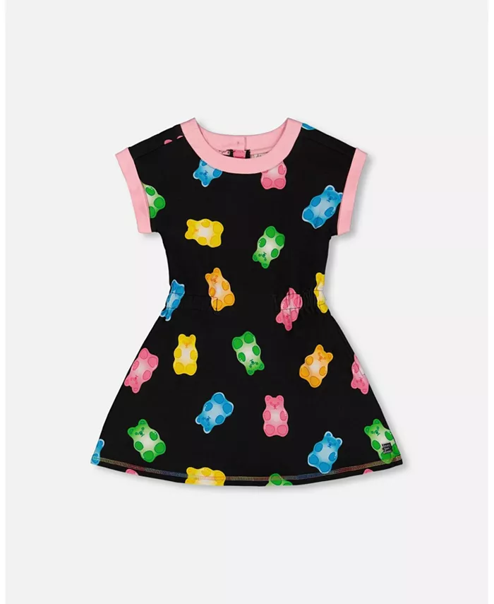 Платье из френч-терри с принтом для девочек постарше, черное с разноцветными желейными конфетами Deux par Deux, черный