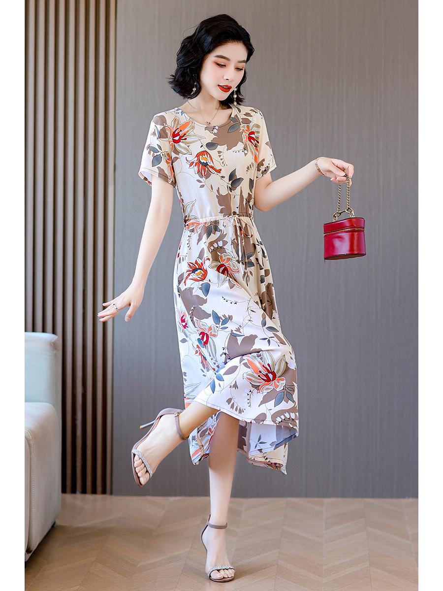 Платье-карман выше колена из хлопка с шелком с цветочным принтом: Летняя Коррекция Фигуры Плюс Размер для Женщин Среднего Возраста 4XL (145-160 jin)