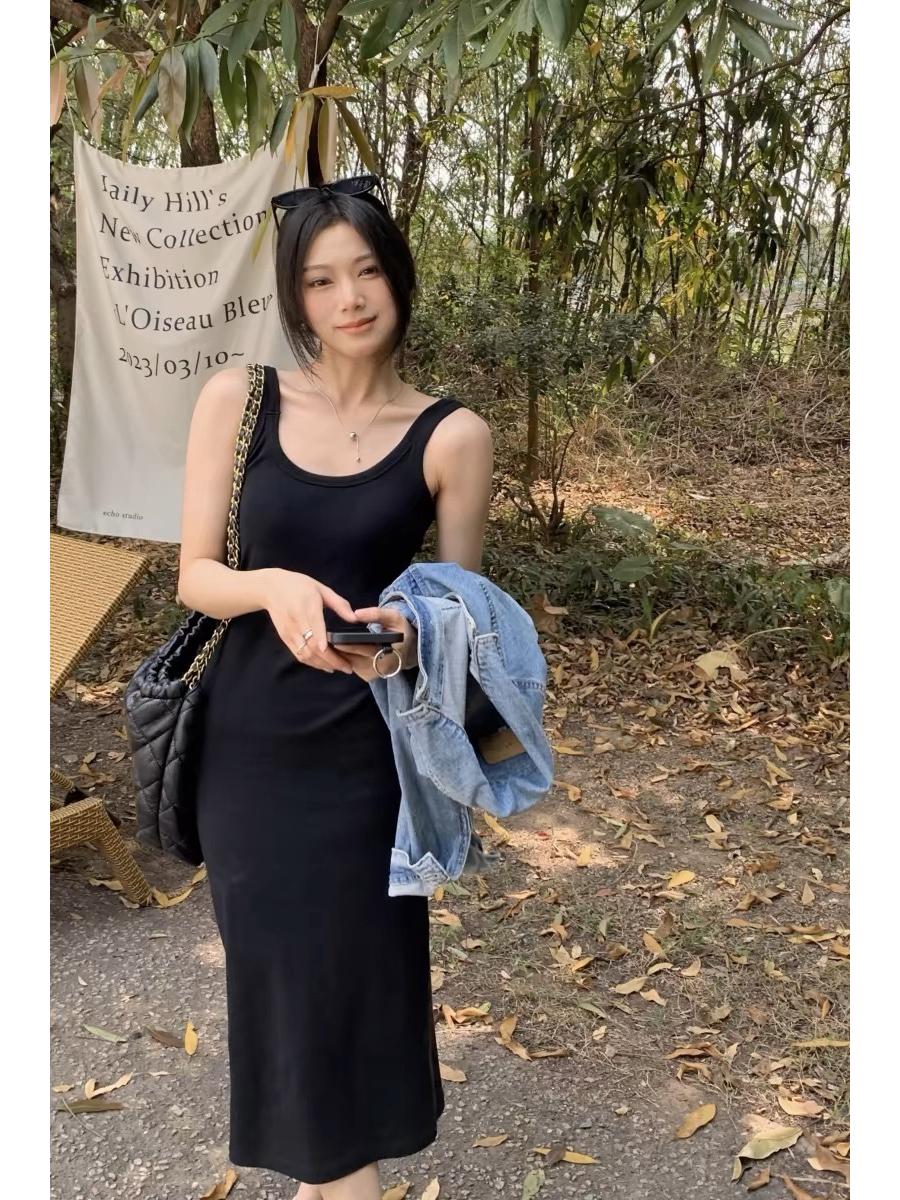 Платье-майка свободного кроя длиной до колена большого размера - Летний стиль Small чёрный