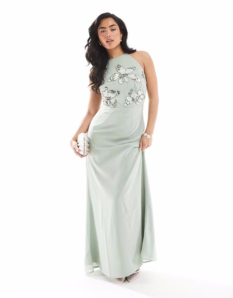 Платье макси Maya с декором и халтер-воротником в цвете зеленого шалфея