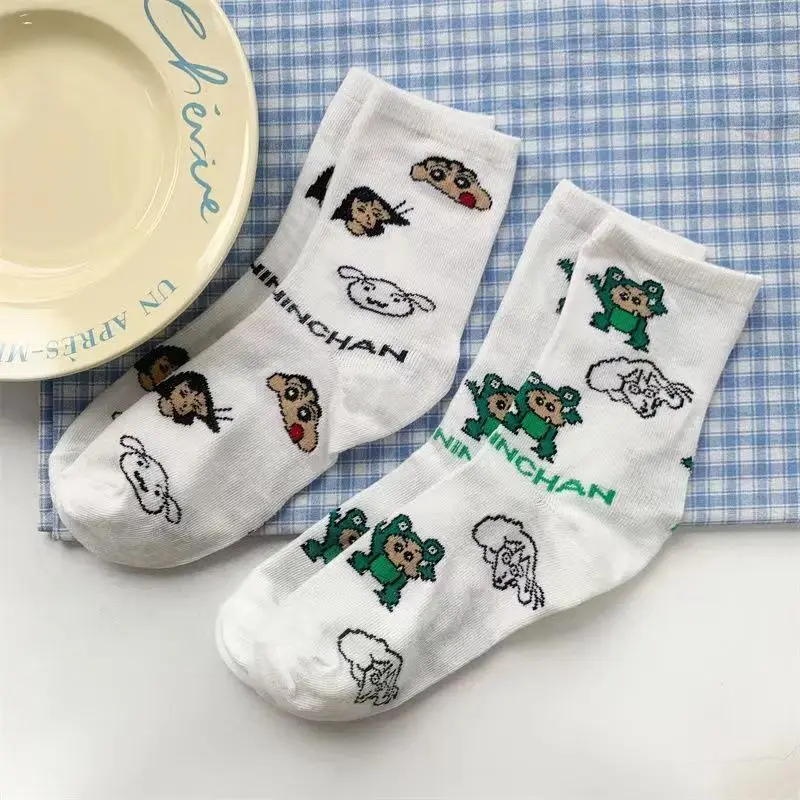 2 Pairs New Crayon Shin-chan Cartoon Socks Kawaii Comfort Mid-calf Women's Socks Men And Women's Cartoon Anime Socks Gifts