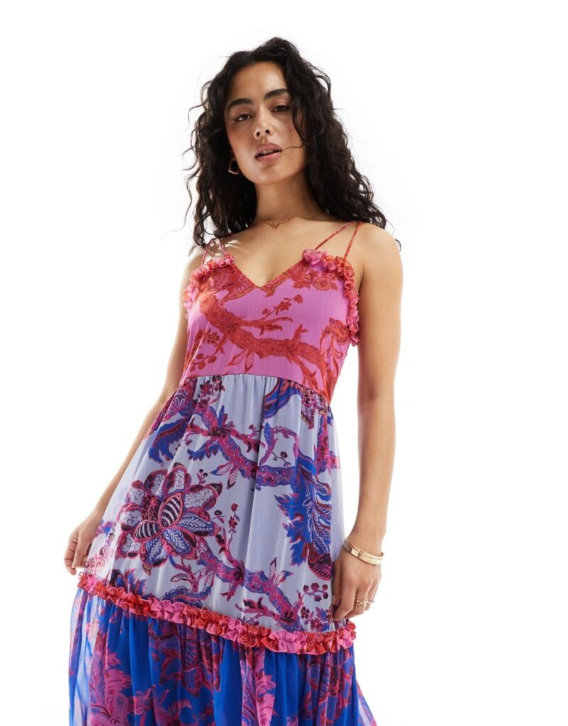 Платье миди на бретелях с завязками на плечах Hope & Ivy и цветочным принтом в стиле колор-блок