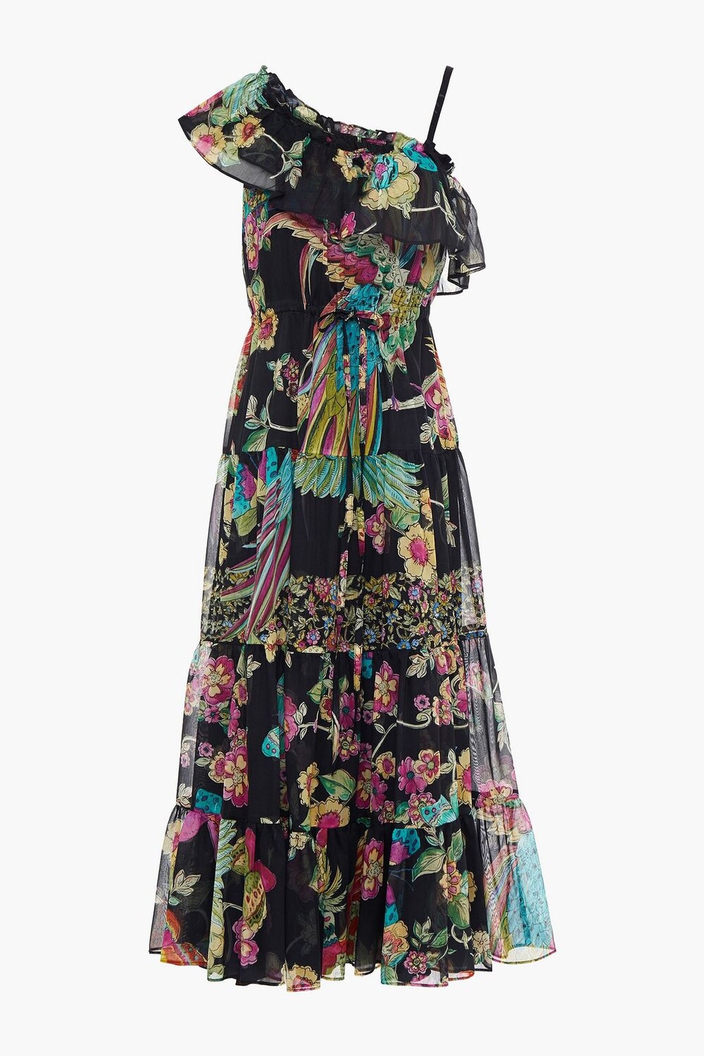 Платье миди на одно плечо из вуали с принтом из хлопка и шелка REDVALENTINO, черный