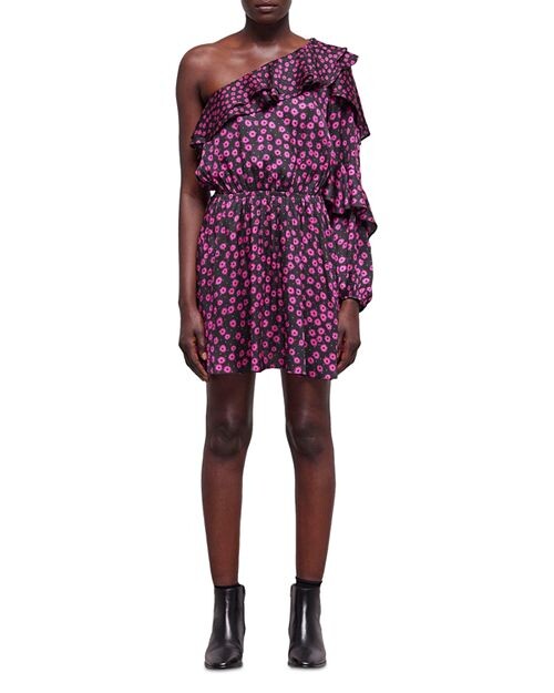 Платье на одно плечо с рюшами и принтом Daisy Dots The Kooples, цвет Pink