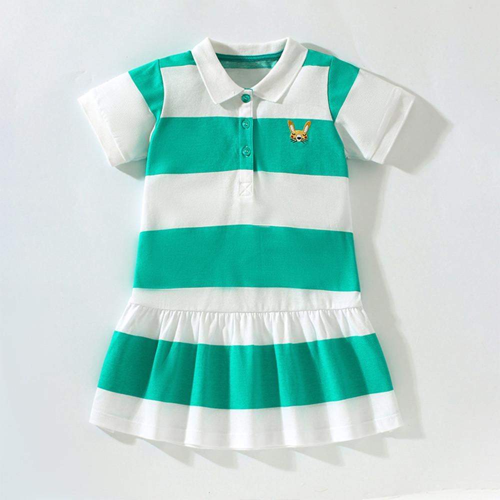 Платье-поло в зеленую полоску для девочек, детское платье с отложным воротником и вышивкой, спортивная одежда для девочек на открытом воздухе