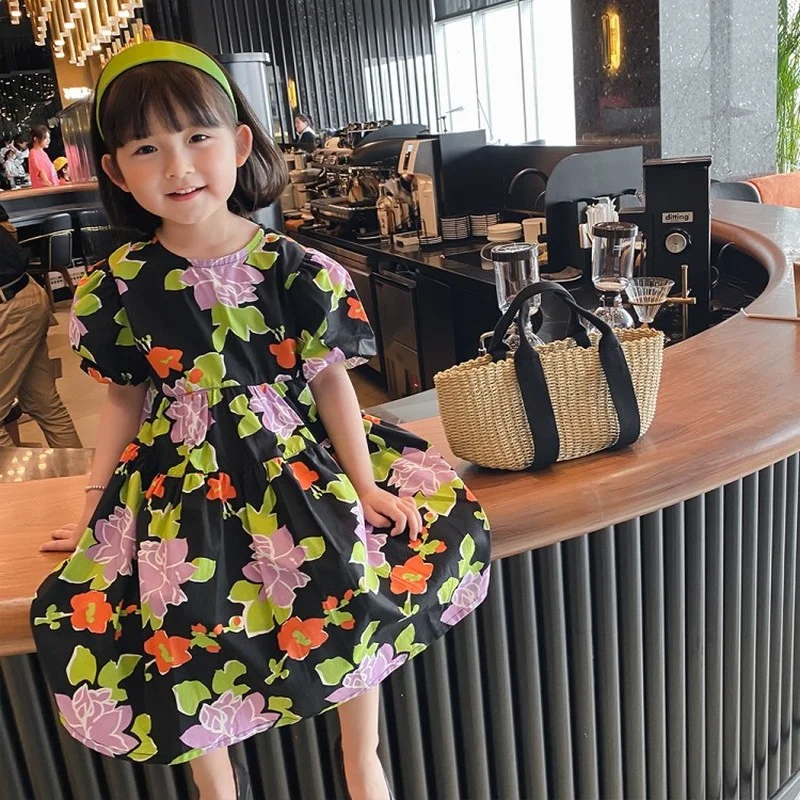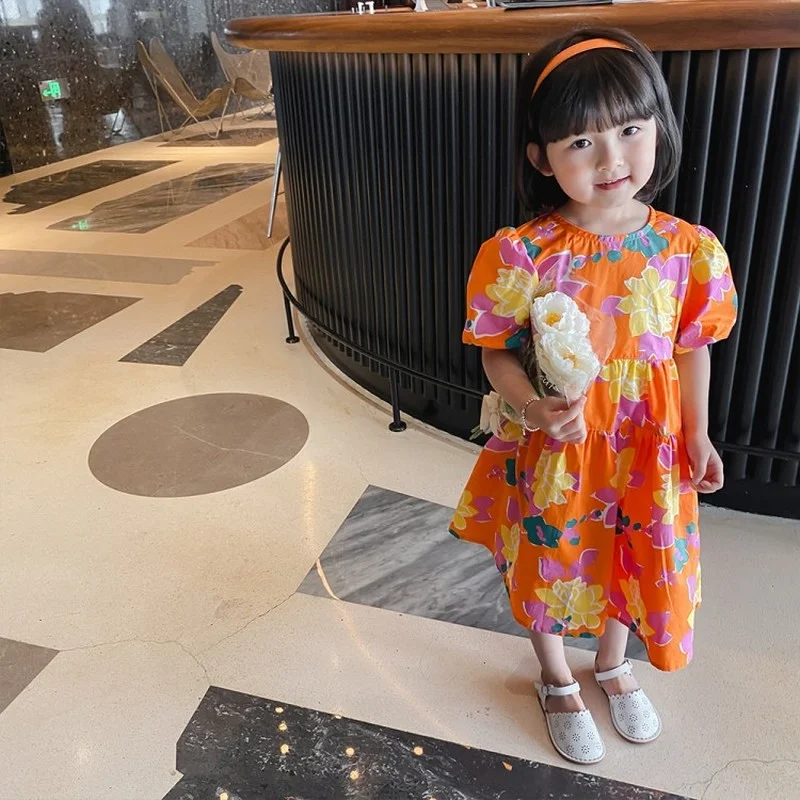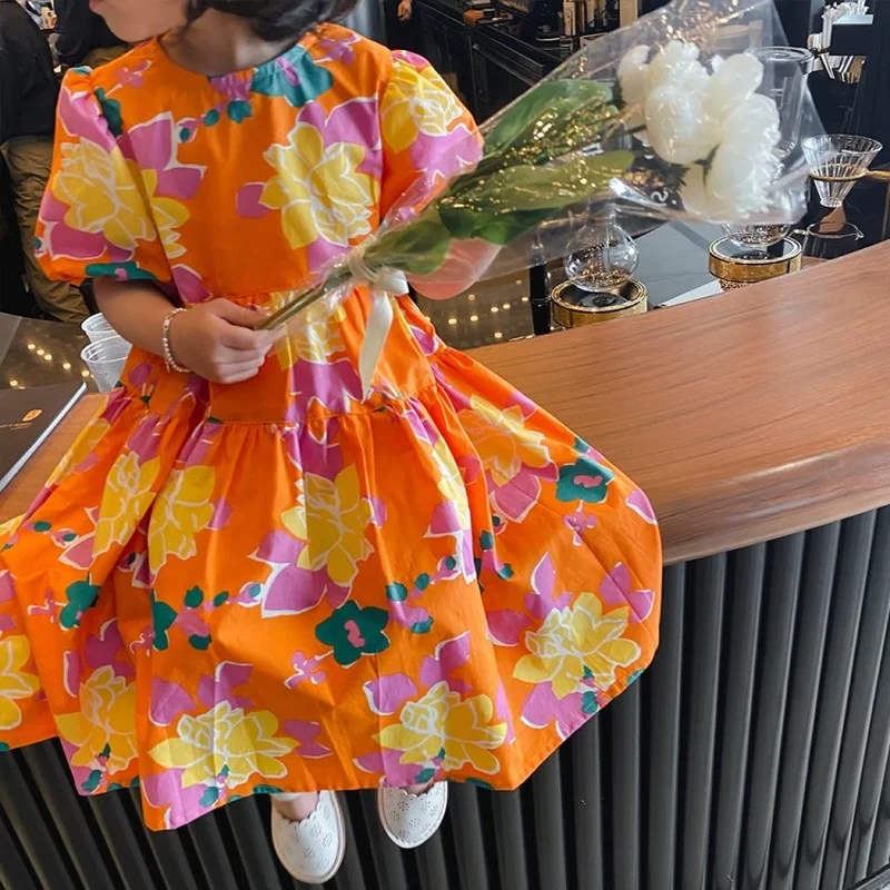 Платье принцессы в Корейском стиле с цветочным принтом для девочек, летнее пляжное платье с цветочным принтом для девочек, длинное платье с ...