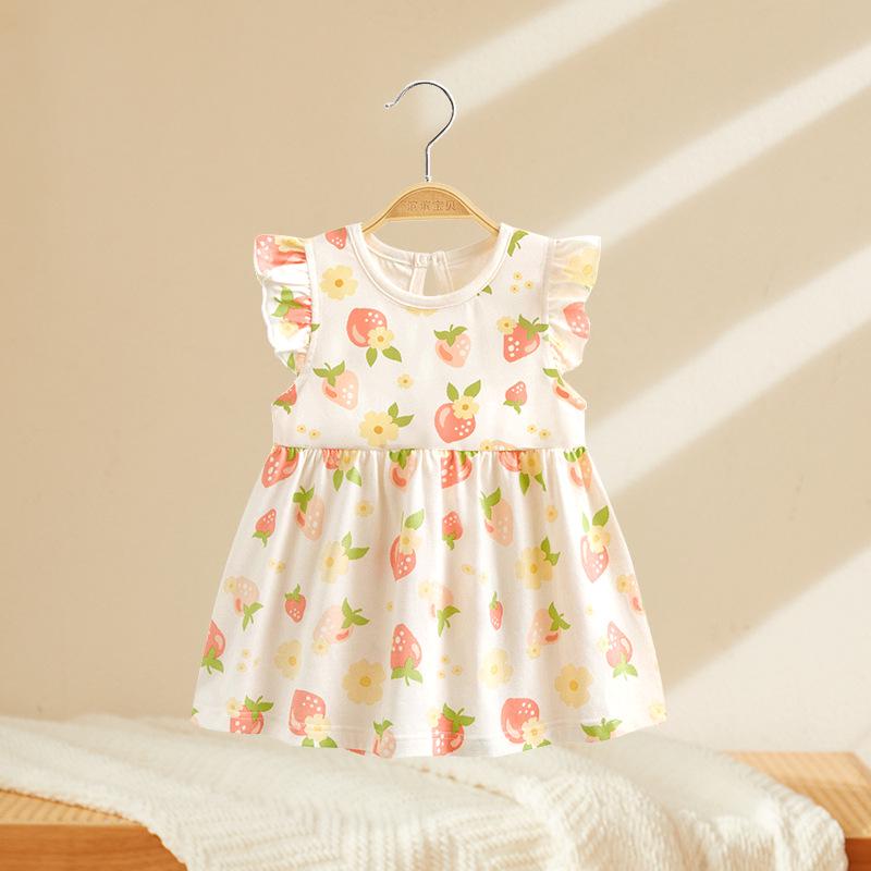 Платье принцессы для девочек с цветочным принтом из хлопка - Летний стиль с рукавами-крылышками 90 cm