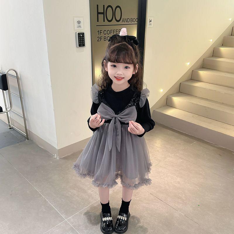 Платье принцессы с бантом Платье для девочек Весенне-осеннее платье Детское газовое платье для девочек 90