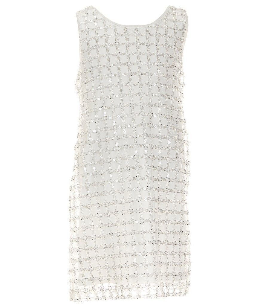 Платье прямого кроя без рукавов с цепочкой и бисером для больших девочек 7–16 лет «Маки и розы» Poppies and Roses, белый