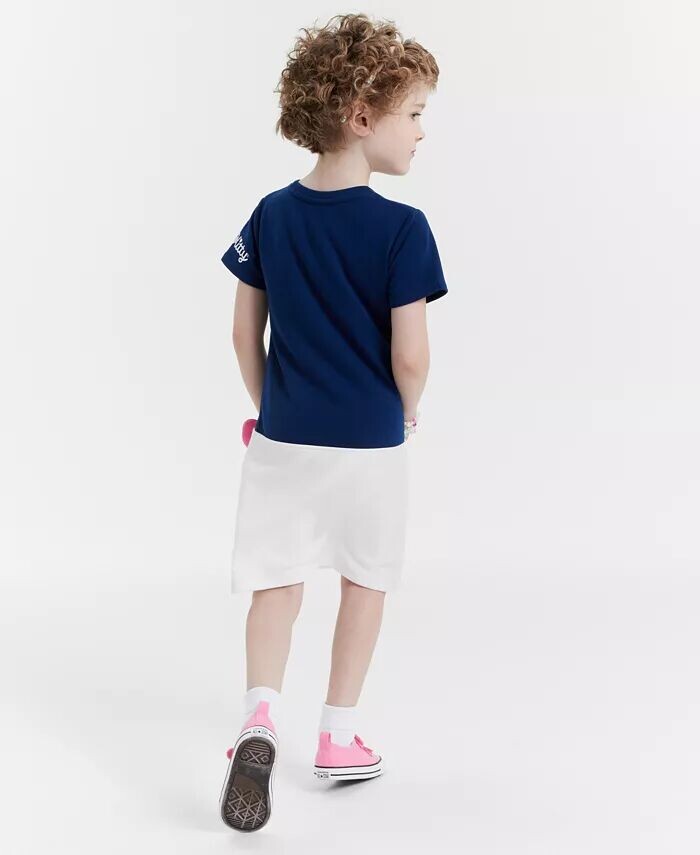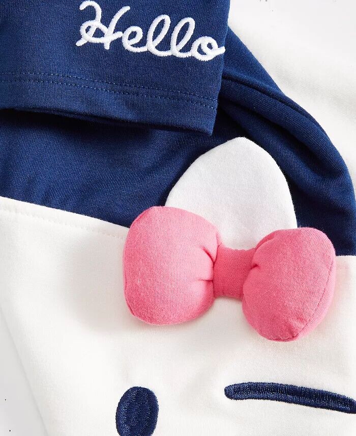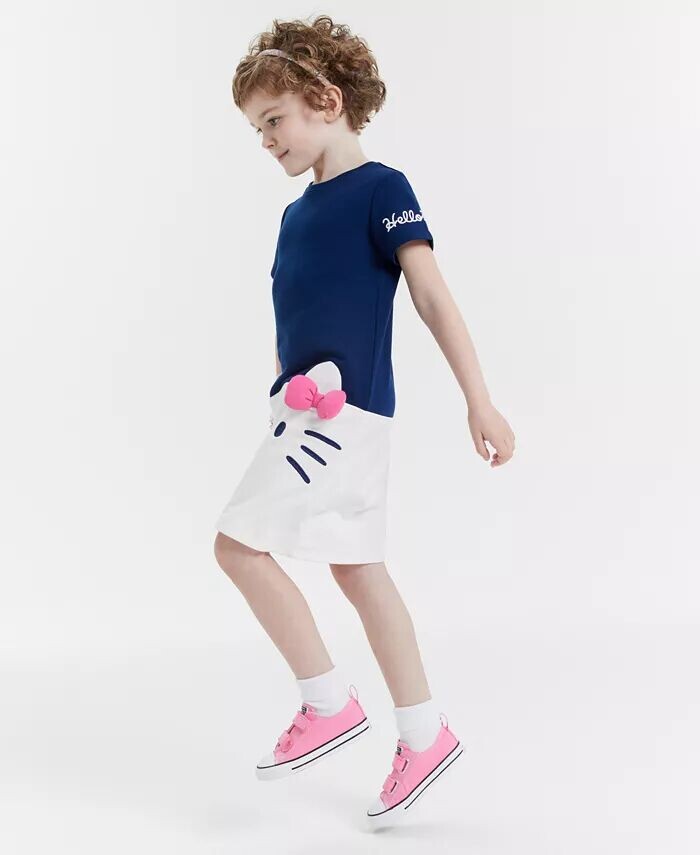 Выглядите очаровательно в этом детском платье-футляре Hello Kitty с короткими рукавами из френч-махра и графическим рисунком Hello Kitty.