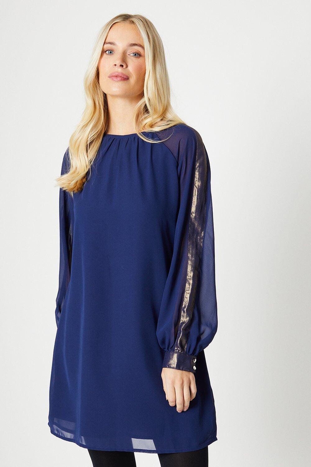 Платье прямого кроя с рукавами из фольги Petite Wallis, темно-синий