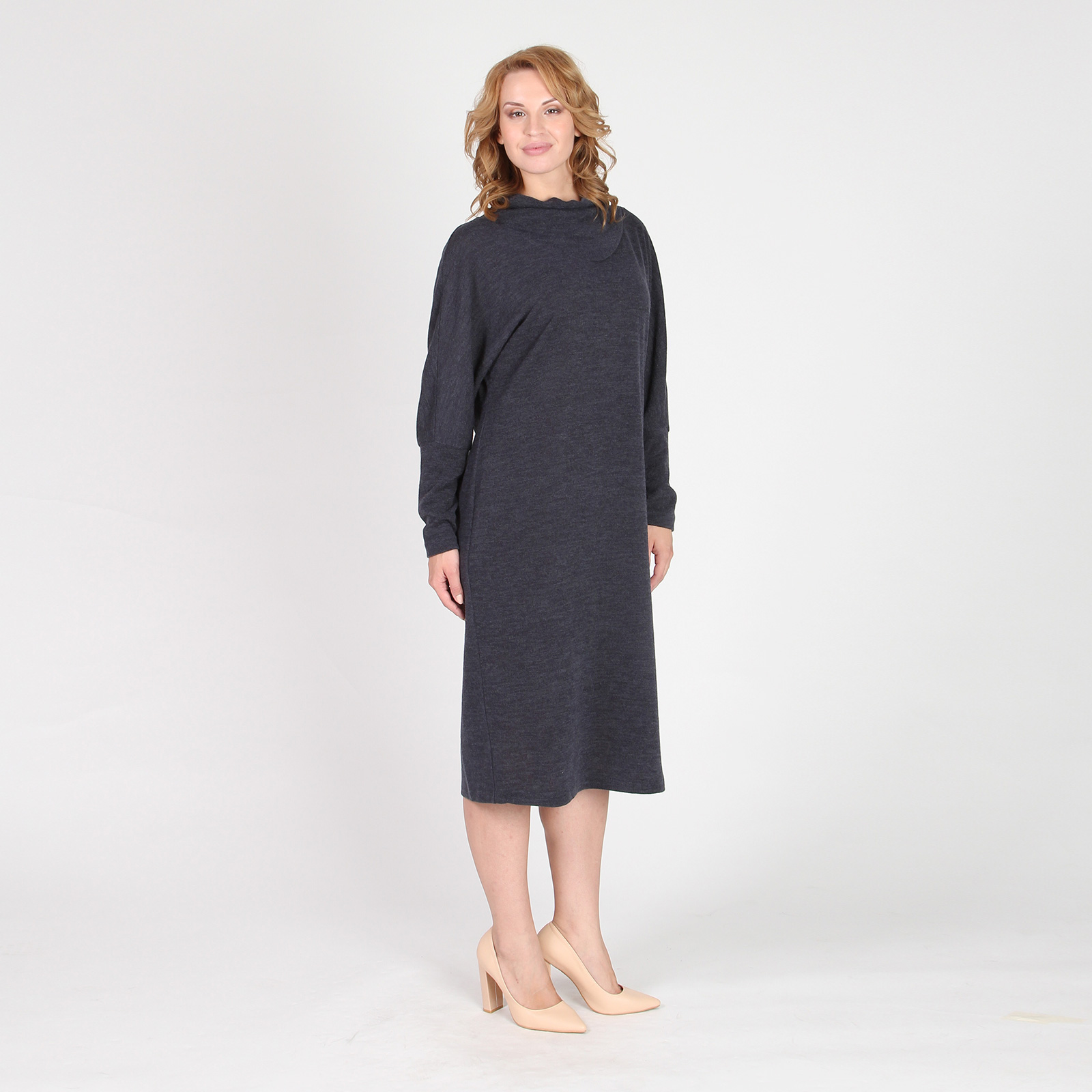Платье прямого кроя выглядит очень стильно. Длинный рукав «летучая мышь» и необычный воротник вносят изюминку в женственный образ. Темно-серый цвет хорошо дополняет модную композицию. Элегантный наряд обладает умеренной длиной, он немного прикрывает колени. Платье прекрасно подойдет для холодной погоды. Оно мягкое, приятное на ощупь и согревающее. Его можно надеть на работу. Сдержанная модель поможет чувствовать себя комфортно на деловых встречах и в офисе.