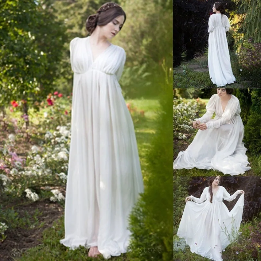 Платье размера плюс для косплея принцессы, Белое Прозрачное платье с V-образным вырезом и высокой талией, сказочное винтажное свободного кр...