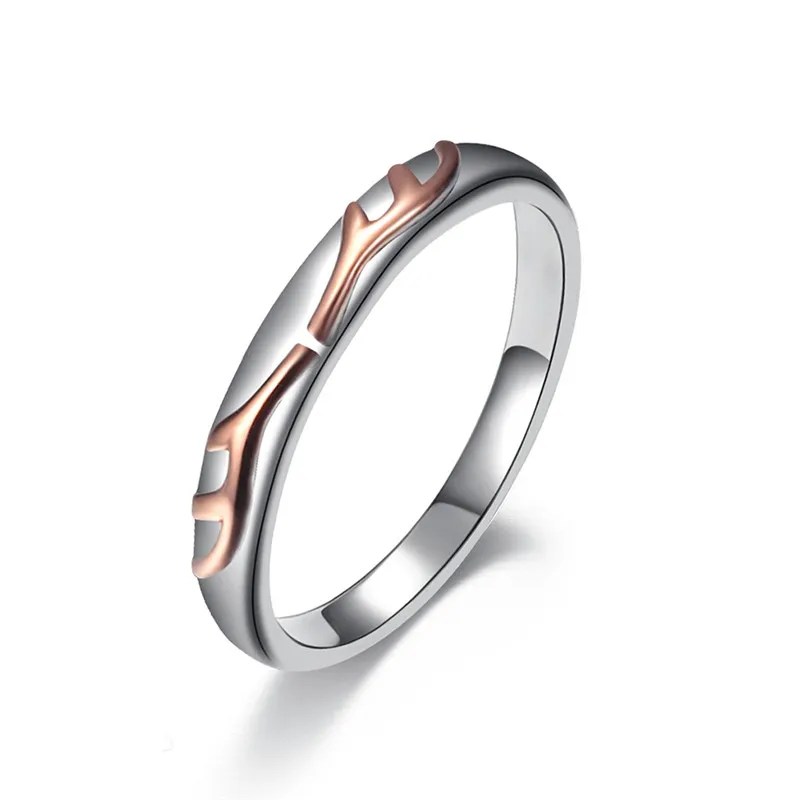 Qings Fashion Jewelry Creative Custom Fine Gift Antler Couple Ring Stainless Steel