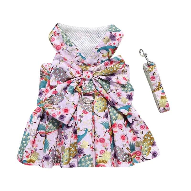 Платье-рубашка с цветочным принтом для собак и кошек, юбка с бантом и подходящим поводком для собак, юбка для щенков, весенне-летняя одежда, новинка, новинка