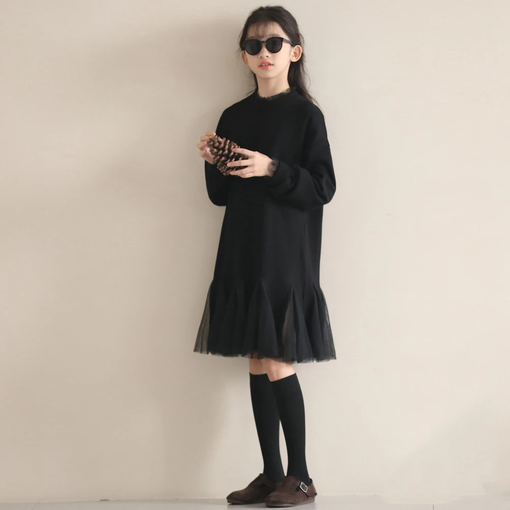 Платье средней длины для девочек-подростков, Осень-зима 2022, новая модная одежда для мам и девочек, детское Сетчатое лоскутное платье принцес...