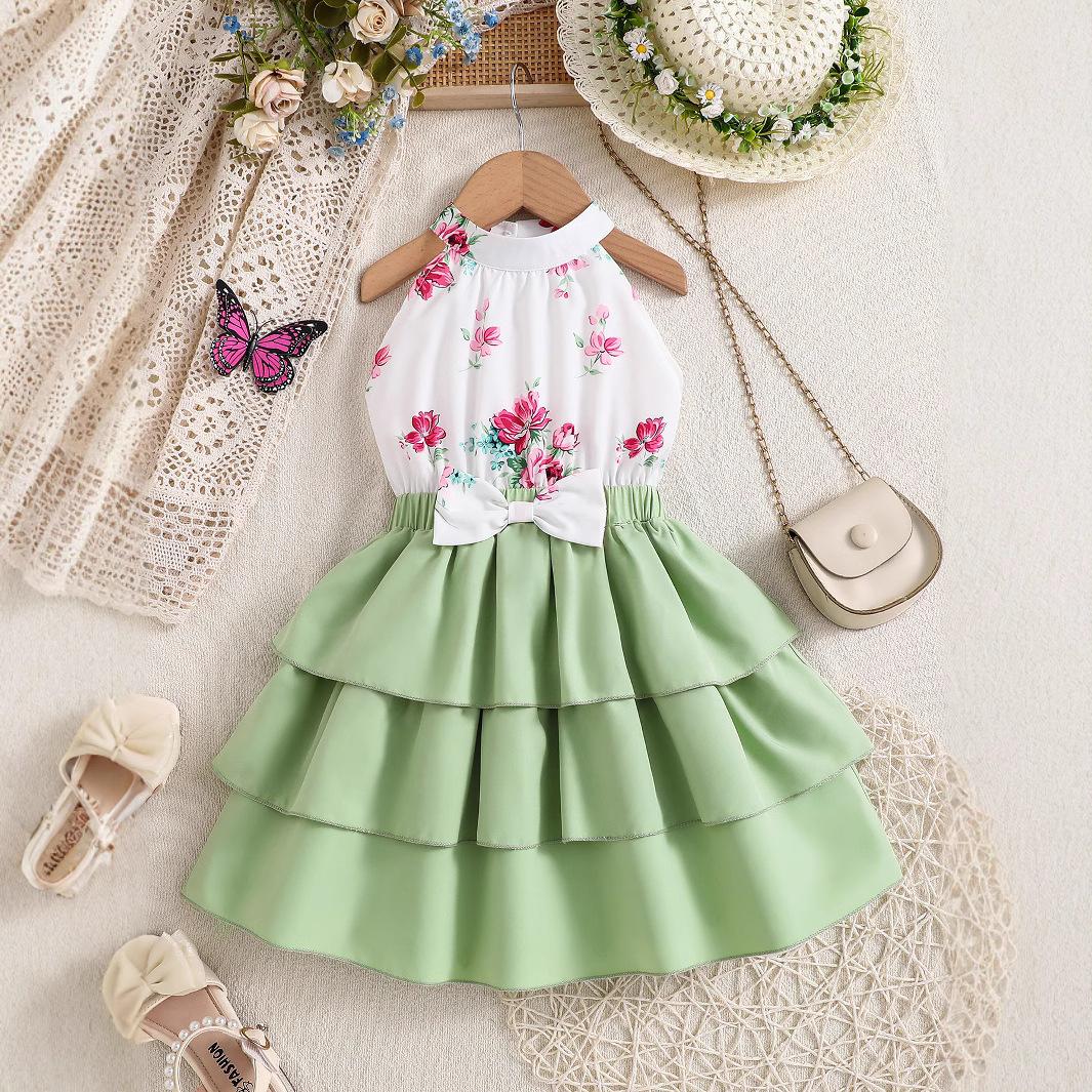 Платье с бантом для девочек, летнее детское платье принцессы, платье без рукавов, супер-сказочное платье 130cm светло-зеленый