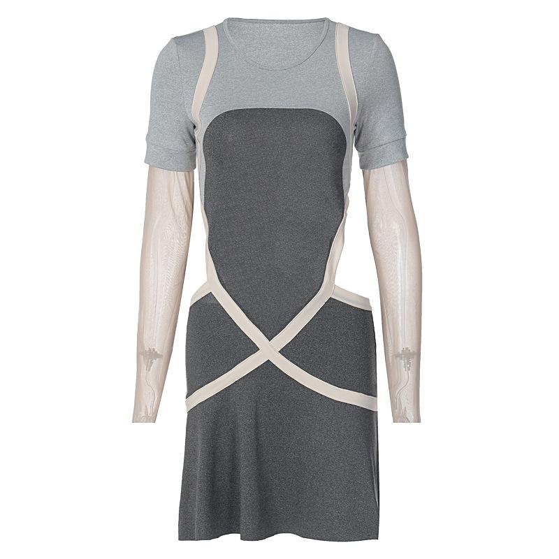 Платье с длинным рукавом Мини-платье Сетчатое пэчворк Осень-зима Женское платье Плиссированное платье Облегающее уличное платье с открытой спиной L серый