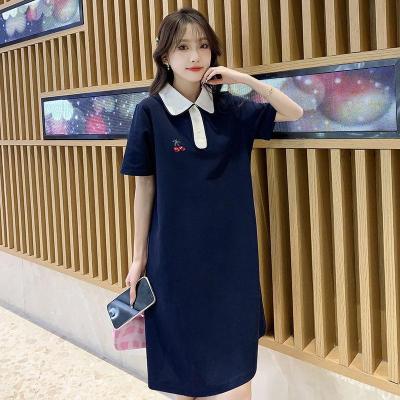 Платье с коротким рукавом и воротником-поло, женское, летнее, новое, маленького и большого размера, свободная футболка, юбка, средняя и длинная XXL