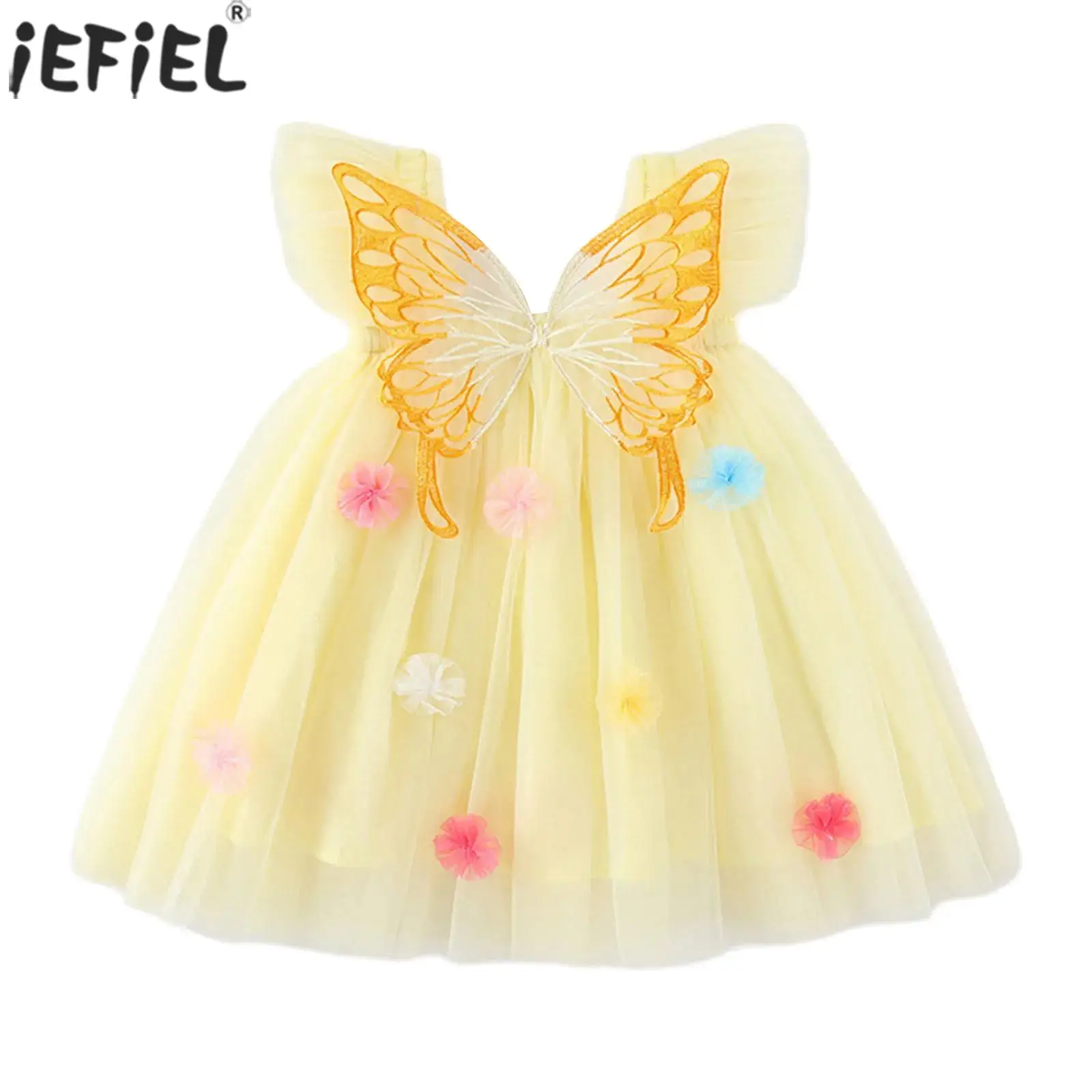 Платье с крыльями бабочки для маленьких девочек, летние милые платья-пачки с рукавами-крылышками и цветами, фатиновые платья-пачки принцессы для фотографии на день рождения