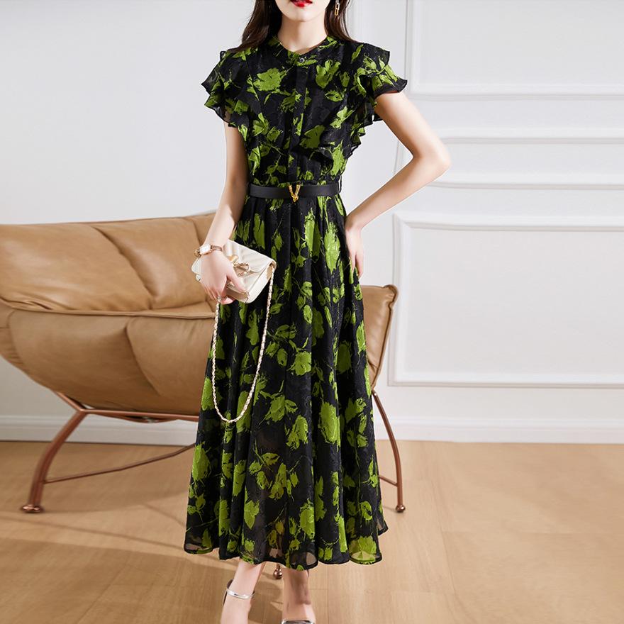 Платье с принтом и краем в виде лепестков лотоса, женское летнее, новая модная темпераментная элегантная приталенная юбка S