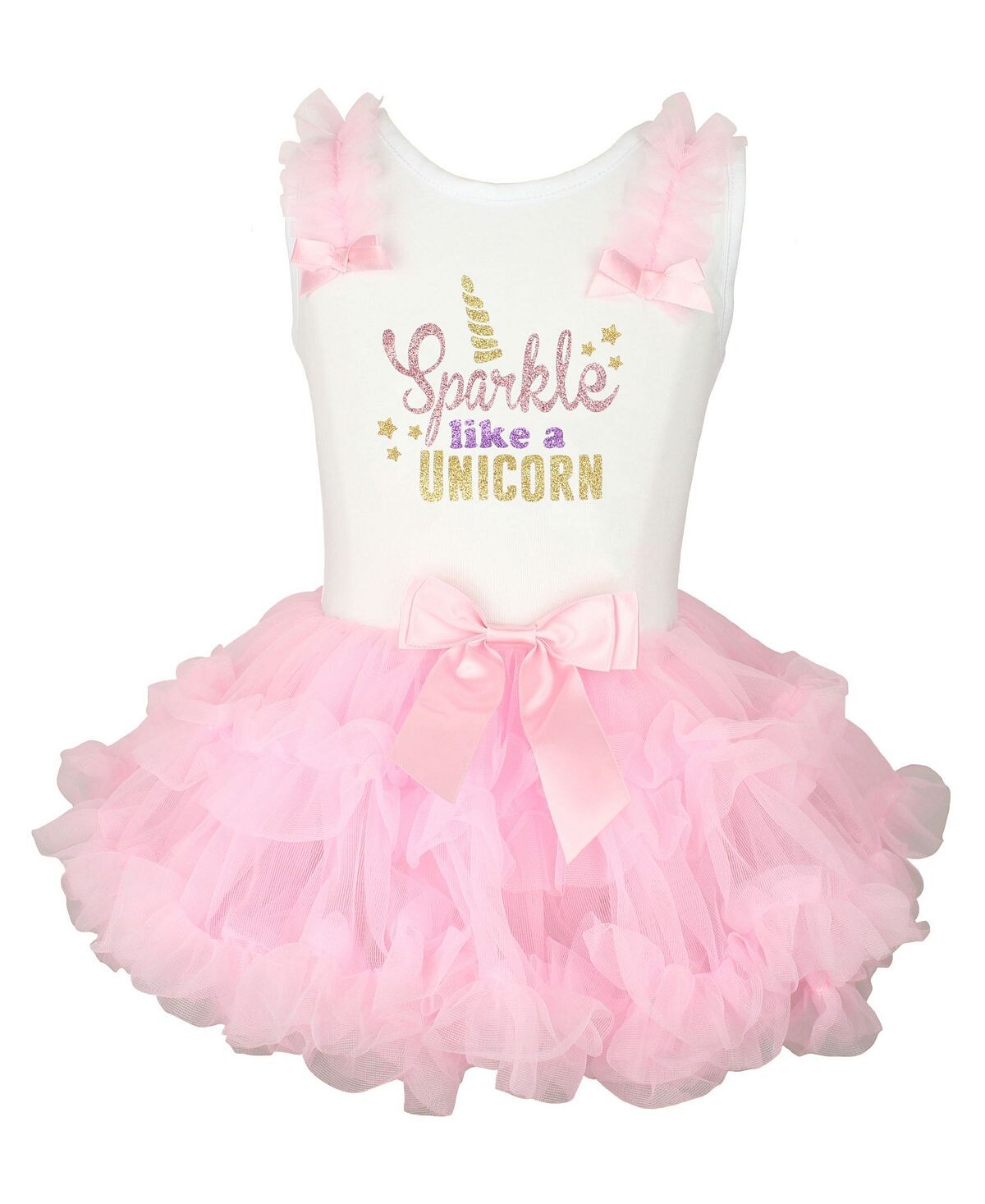 Платье с рюшами и юбкой-пачкой с блестящим принтом единорога для маленьких девочек Popatu