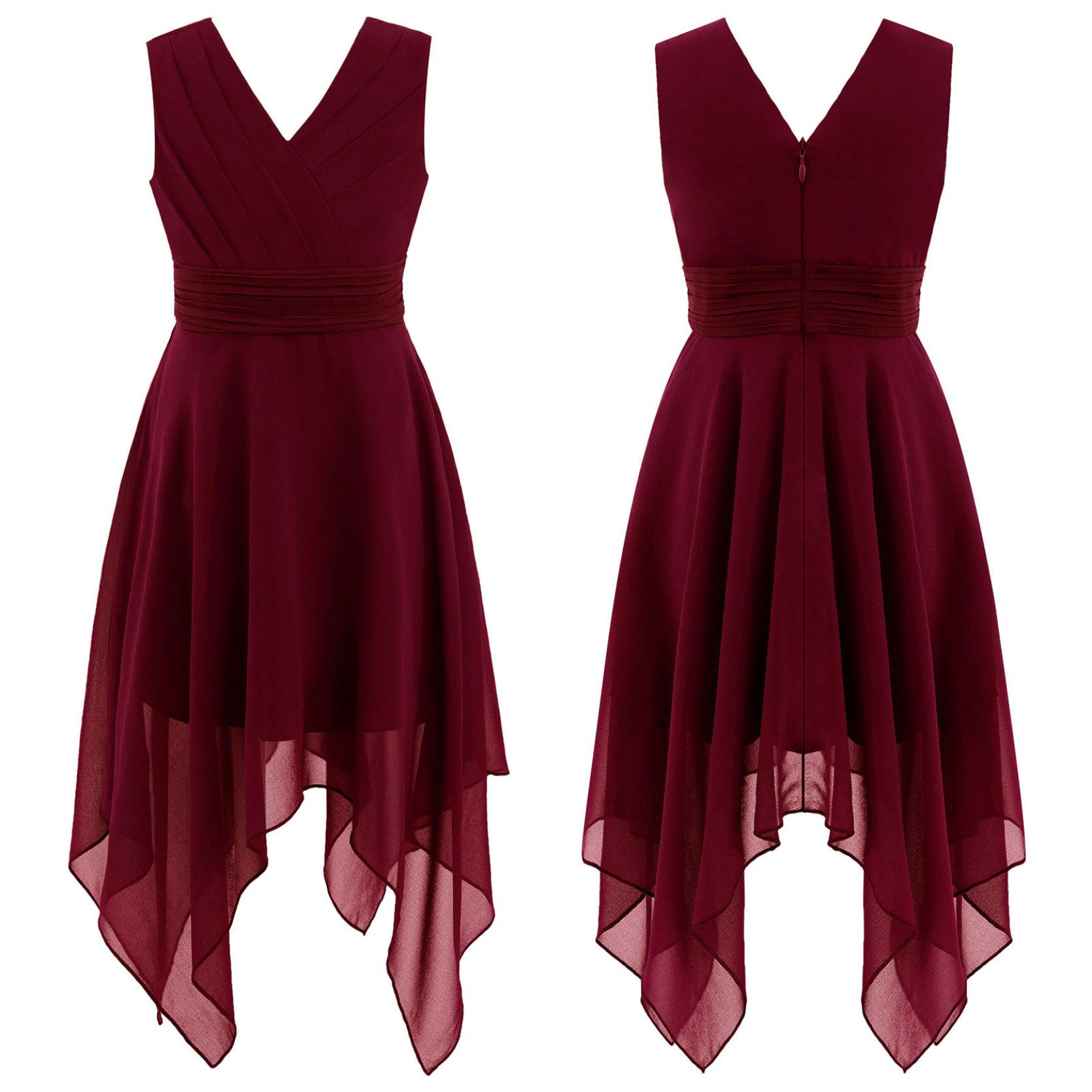 Платье с цветочным узором для девочек, летнее шифоновое вечернее платье с v-образным вырезом, свадебные платья на день рождения, детский костюм, элегантные платья принцессы 14-16 Years бордовый