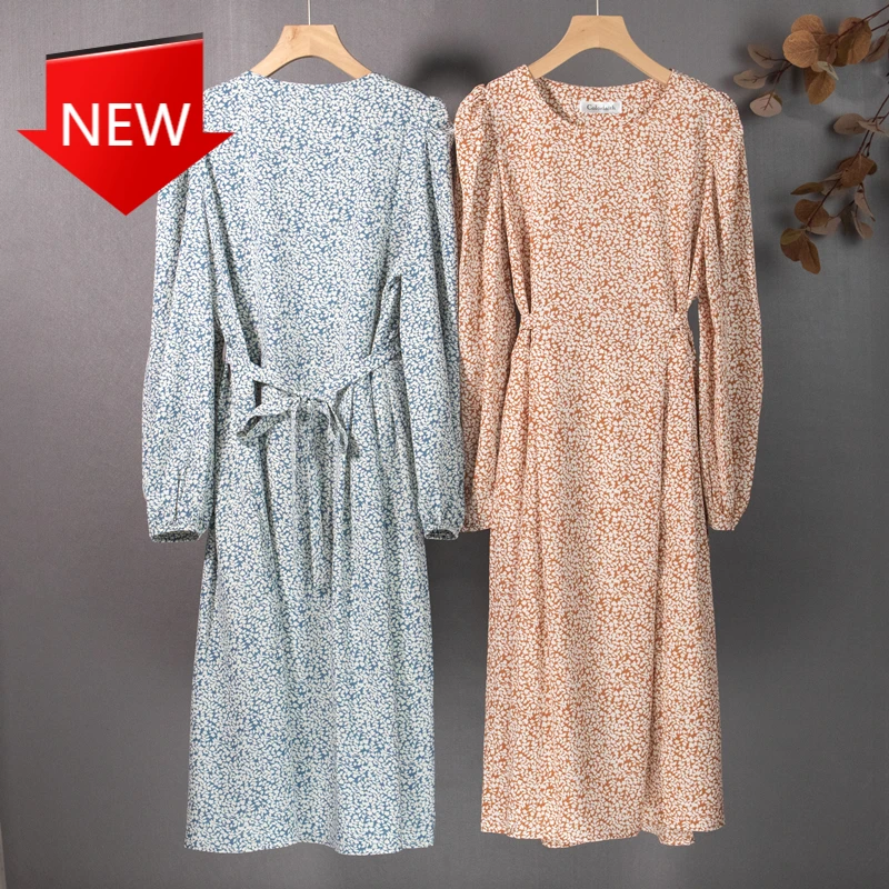 Женское платье с пышными рукавами, винтажное длинное платье большого размера в Корейском стиле с цветочным принтом, Новинка лета 2021