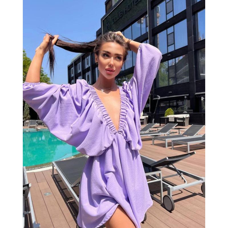 Платье с V-образным вырезом и длинными рукавами, большое свободное платье с объемными рукавами XL фиолетовый