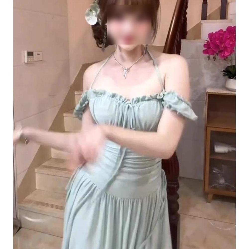 Платье-топ с открытыми плечами, летнее, с завышенной талией, супер фея, А-силуэта, длинное, юбка для морского отдыха XL- (recommended 110-60kg)
