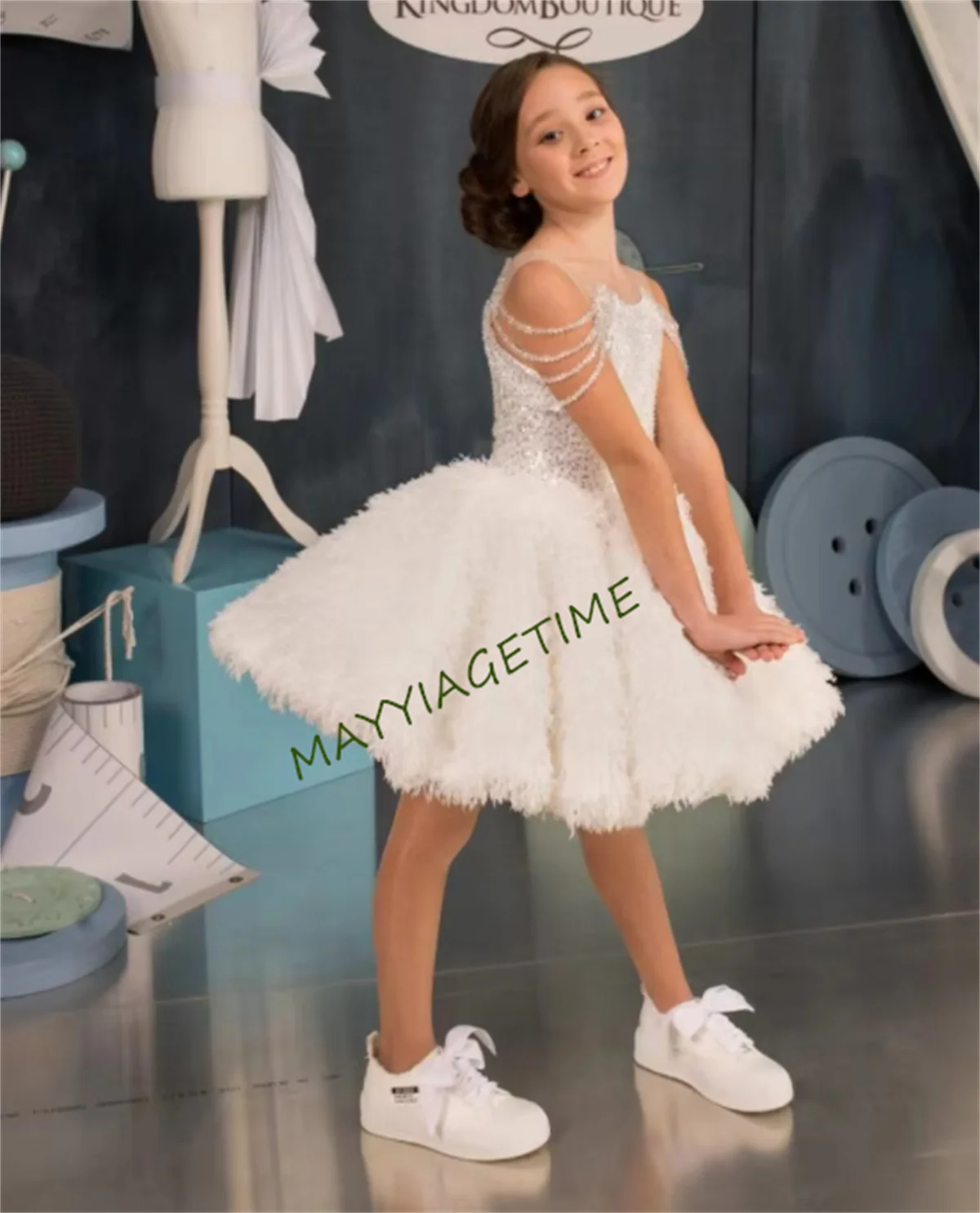 Платье цвета слоновой кости на заказ для маленьких девочек, пышные платья для девочек, блестящее платье для причастия с блестками, платья длиной до колена для девочек-цветочниц, детские D