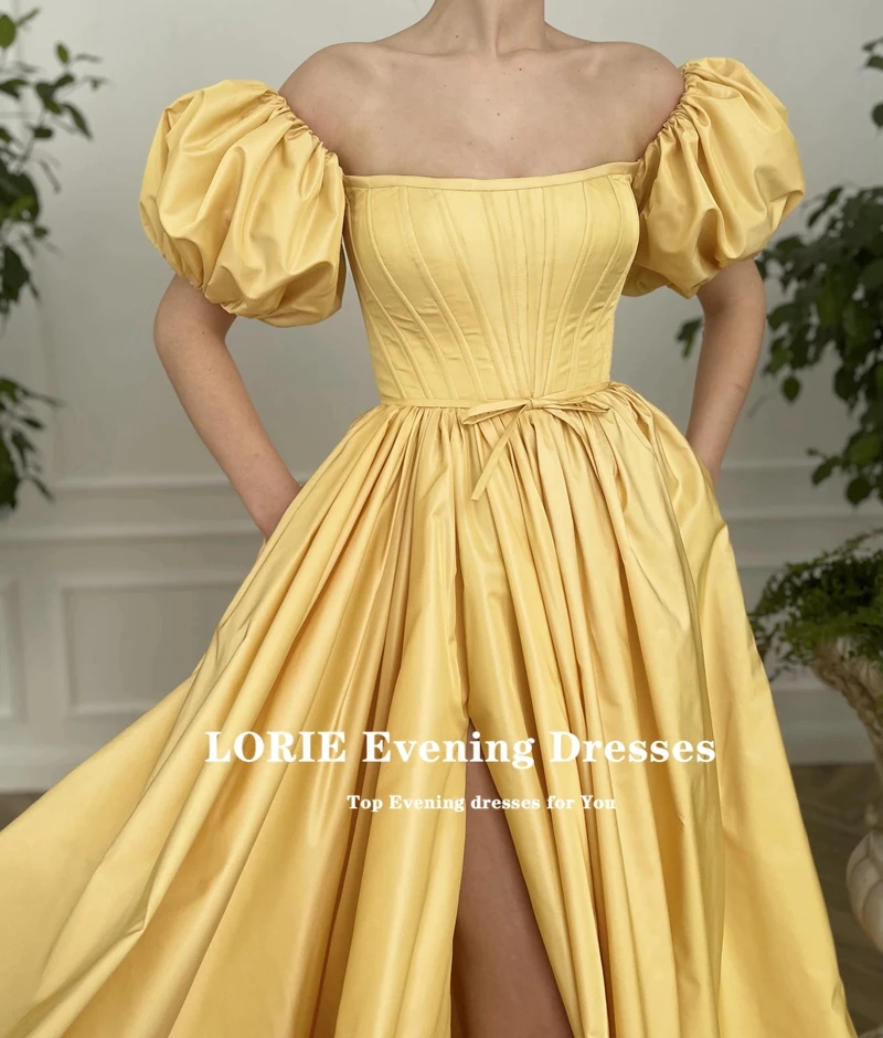 Платье LORIE длинное ТРАПЕЦИЕВИДНОЕ из тафты, бальное платье с разрезом для выпускного вечера, бальное платье с пышными короткими рукавами, ко...