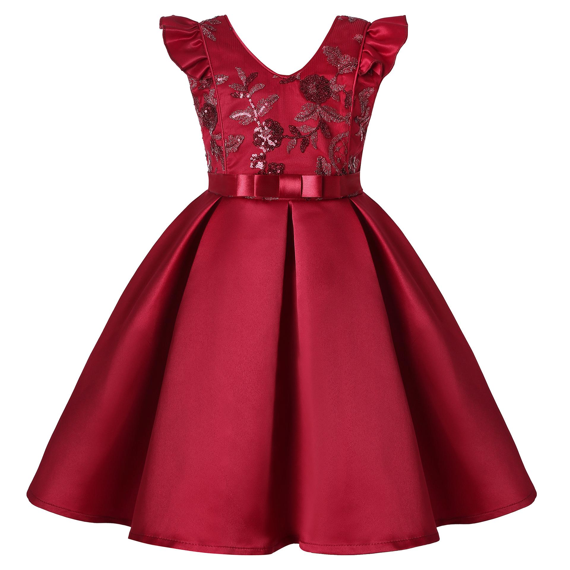 Платья для девочек Детские платья с пайетками Праздничное праздничное платье принцессы Сверкающее детское платье на день рождения Элегантное мягкое праздничное платье Бальное платье для девочек 120cm пурпурно красный