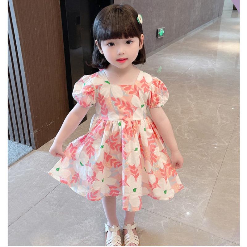 Платья для девочек, платья для девочек маленького и среднего размера, повседневные платья принцесс с цветочным принтом для младенцев и девочек 110 розовый