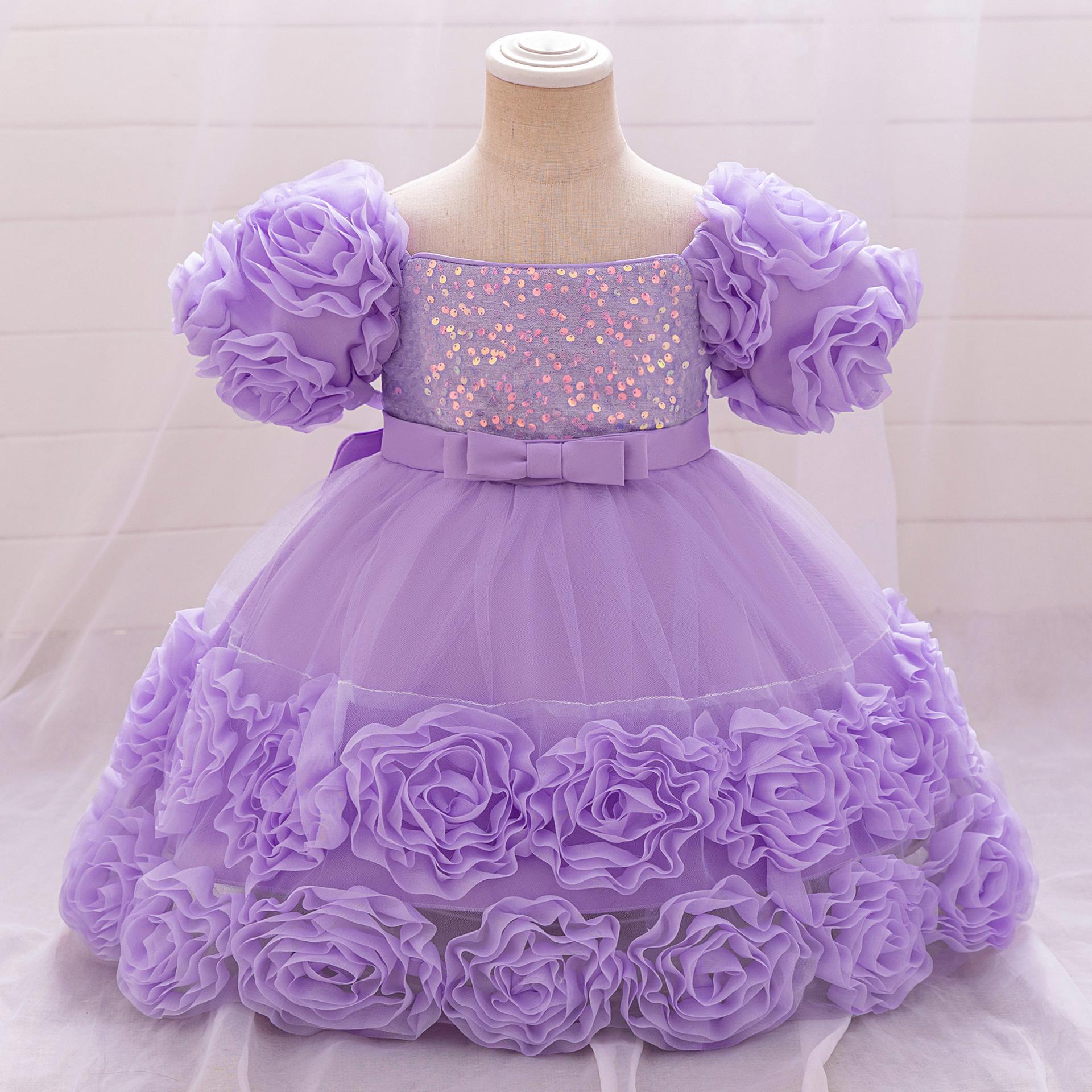 Платья для девочек с пайетками и цветами, рождественское свадебное кружевное платье на первый день рождения для детей, детский формальный вечерний костюм 90