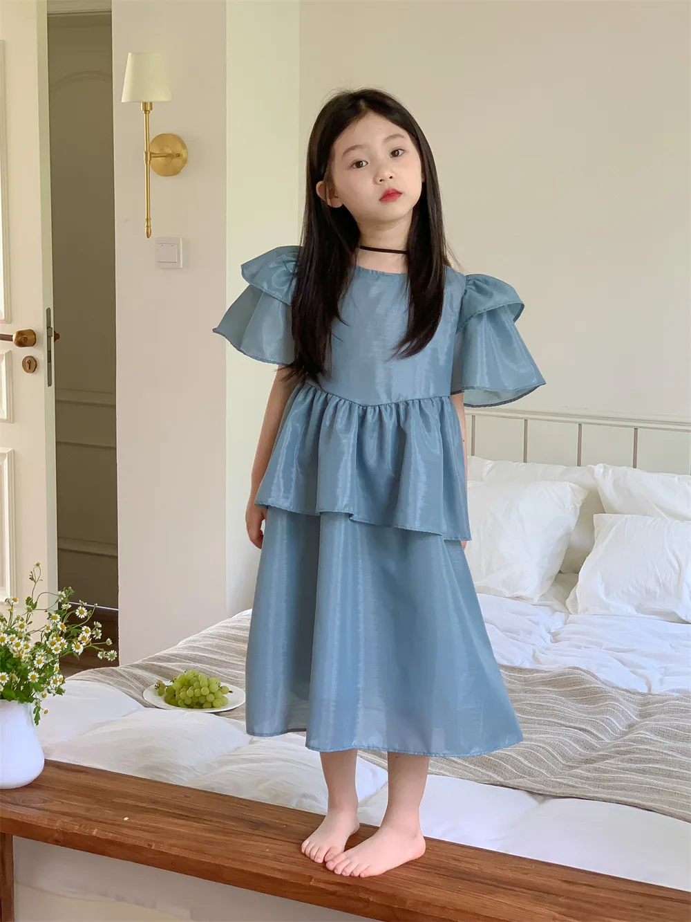 Платья для девочек 2023, летняя корейская детская одежда, однотонное простое детское платье с летающим рукавом, милое платье принцессы для ма...