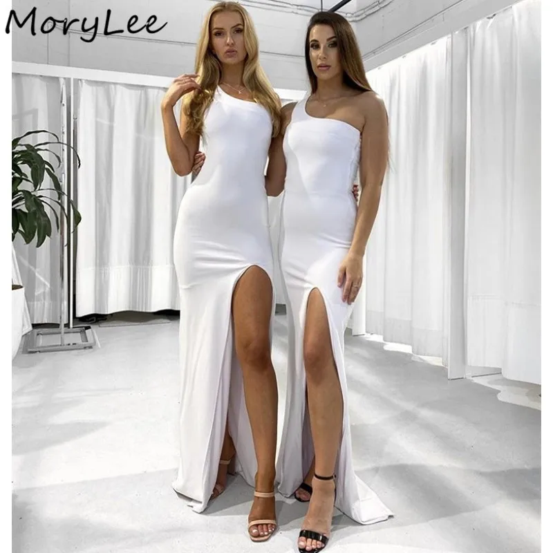Платья подружки невесты на одно плечо Русалка С Боковым Разрезом спандекс атласные платья свидетельницы на молнии сзади свадебные вечерние платья невесты