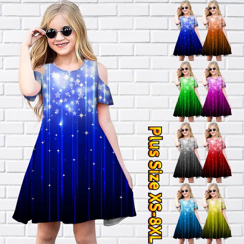 Платья с цветочным принтом в крошечные пятна для девочек, детское праздничное платье с открытыми плечами для девочек, платье принцессы, платье с короткими рукавами для девочек старше 4 лет